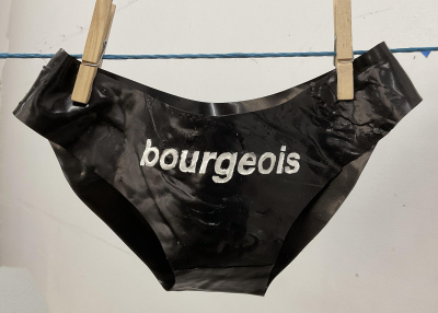 Her own formulated ink is poured into sheets and dried, then folded, draped, hung, cut, woven, patchworked and may be fused to itself. The medium is organic - animal gelatin - and may still be used as pigment using water and heat.